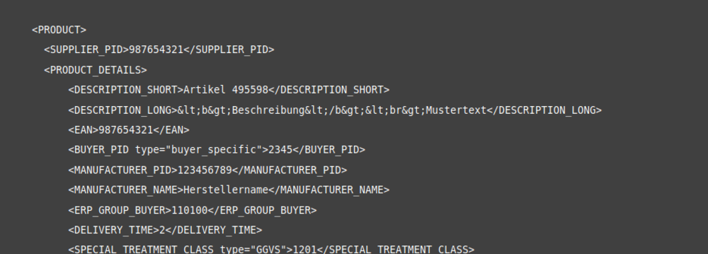Beispiel: Element “PRODUCT” in einem BMEcat-Katalog