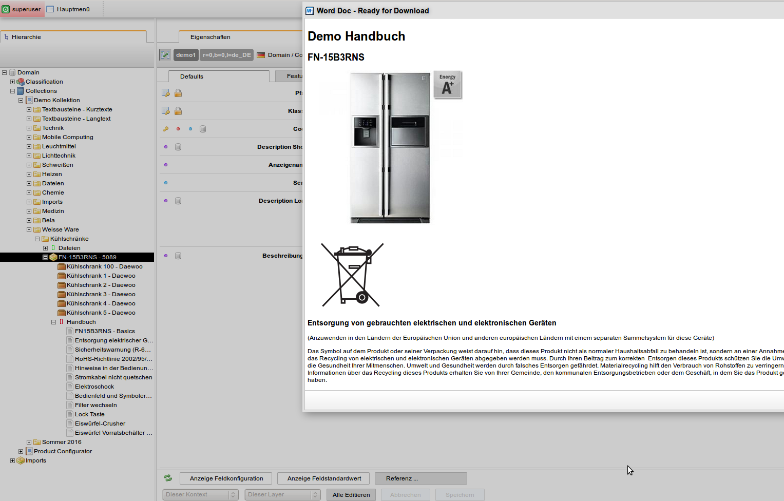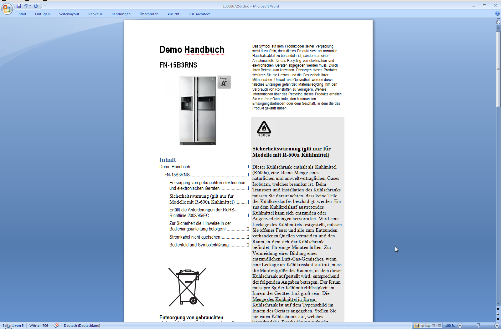 Screenshot: Automatisch erzeugtes Dokument mit Bedienungsanleitung.