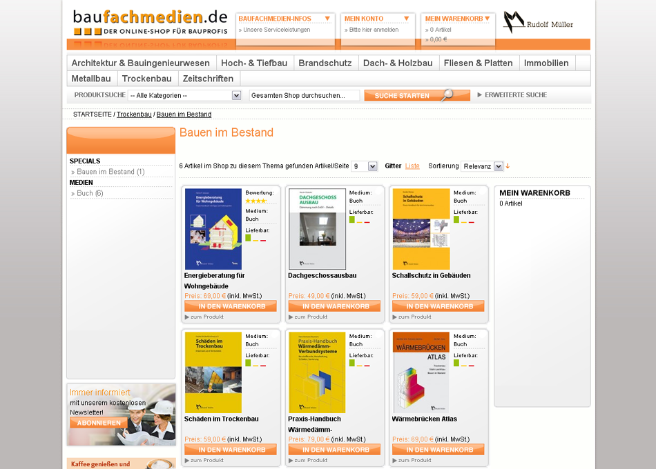 Die Webseite www.baufachmedien.de mit Produkdaten aus Sepia Alterra
