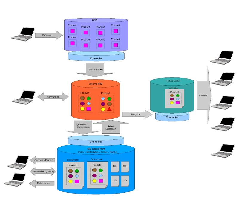 Product Information Management mit ERP, Alterra, MS SharePoint und CMS (hier Typo3)