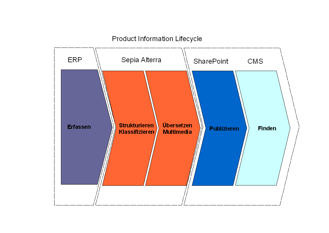 Mit dem kombinierten Einsatz von SAP, Sepia Alterra, MS SharePoint und einem Web CMS verbinden Unternehmen die Vorteile eines ausgereiften ERP-Systems, des innovativen Enterprise Product Information Management Systems mit den Stärken des professionellen webbasierten Dokumentenverwaltungs- und Publikationsservers und der Möglichkeit Produkte professionell im Web darzustellen.