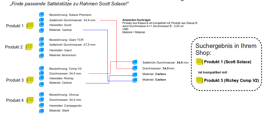 Liegen die Daten wie beschrieben vor, dann kann ein Produktkonfigurator innerhalb eines Webshops oder auf einer Webseite dem Kunden oder dem Verkaufsmitarbeiter die möglichen Produktkomponenten vorschlagen, auf deren Auswahl reagieren und schießlich das gewünschte Ergebnis summiert darstellen - und zur Bestellung anbieten.