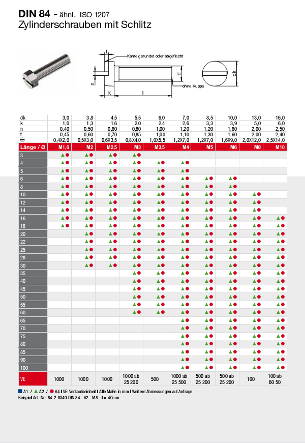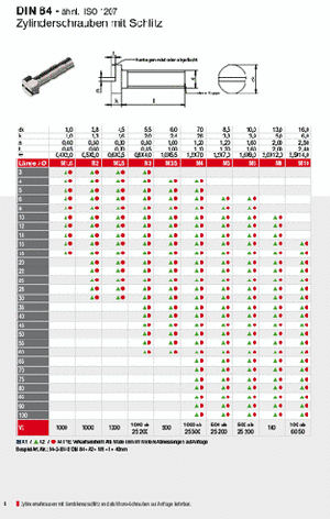 Katalogseite mit Normteil und Güten als Kreuztabelle