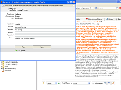 Im Folgenden beschreiben wir den Einsatz von Alterra Translation Memory als Aufsatz zu Sepia Alterra PIM Software. Innerhalb dieser Produktdatenbank wird das Translation Memory Modul in Kombination mit den konfigurierten Sprach-Layern (Ebenen) verwendet.